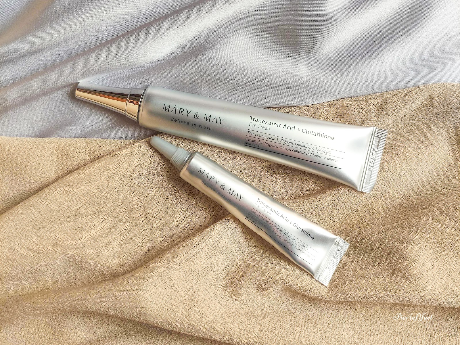 Tutto questo fa diventare secondo me l'acido tranexamico uno di quegli ingredienti da tenere sott'occhio, ma come anticipavo in passato non credo di averlo usato scientemente, fino a qualche mese fa quando ho iniziato ad utilizzare la Tranexamic Acid + Glutathione Eye Cream di Mary & May.